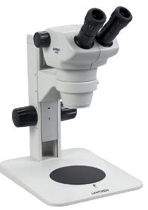 The Unitron Z850 Series with a 6.3:1 zoom ratio is an ideal choice for industrial inspection, assembly, quality control, OEM integration, research and education applications requiring a higher magnification range. The Z850 Series is a versatile, high performance, ergonomically designed zoom stereo microscope ruggedly built to withstand years of heavy usage. The Z850 Series is available with either a binocular or trinocular viewing head. · Standard Specifications · 0.8x – 5.0x zoom magnification range · 6.3:1 Zoom ratio · Magnification range 8x-50x (with 10x eyepieces) · 45° viewing angle · 115mm working distance · Interpupillary Distance Adjustment 52mm – 75mm · WF10x/22mm focusing eyepieces · Field of view 27.5mm-4.4mm