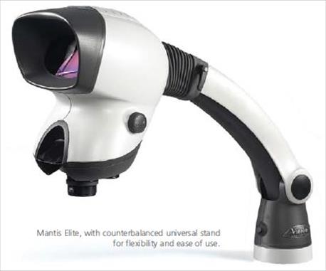 MANTIS ELITE Eyepiece-less Inspection Microscopes Mantis Elite is a patented 'eyepieceless' stereo microscope, offering truly superb 3-D imaging and unparalleled levels of comfort, reducing operator fatigue and increasing quality and productivity. Winner of numerous industry design awards, the outstanding ergonomic design is unrivalled by other inspection stereo viewers. With magnification options up to 20x, Mantis Elite is the high performance stereo viewer of choice for a wide range of precision tasks requiring magnification. · 2x – 20x magnification options (2 in quick change turret) · Superior ergonomics for fatigue-free viewing and increased quality / productivity · Superb hand-eye co-ordination for inspection and manipulation tasks · Long working distance and large field of view · True colour, LED illumination providing up to 10,000 hours of shadow-free viewing · Choice of stands and accessories to suit numerous applications · Mantis Elite-Cam variant, with internally integrated USB2.0 digital camera |